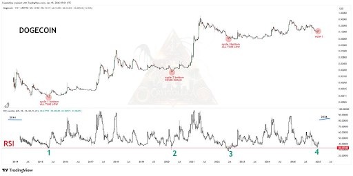 🎯 RSI Dogecoin снова на исторически перепроданных уровнях – повторится ли сценарий 2021 года