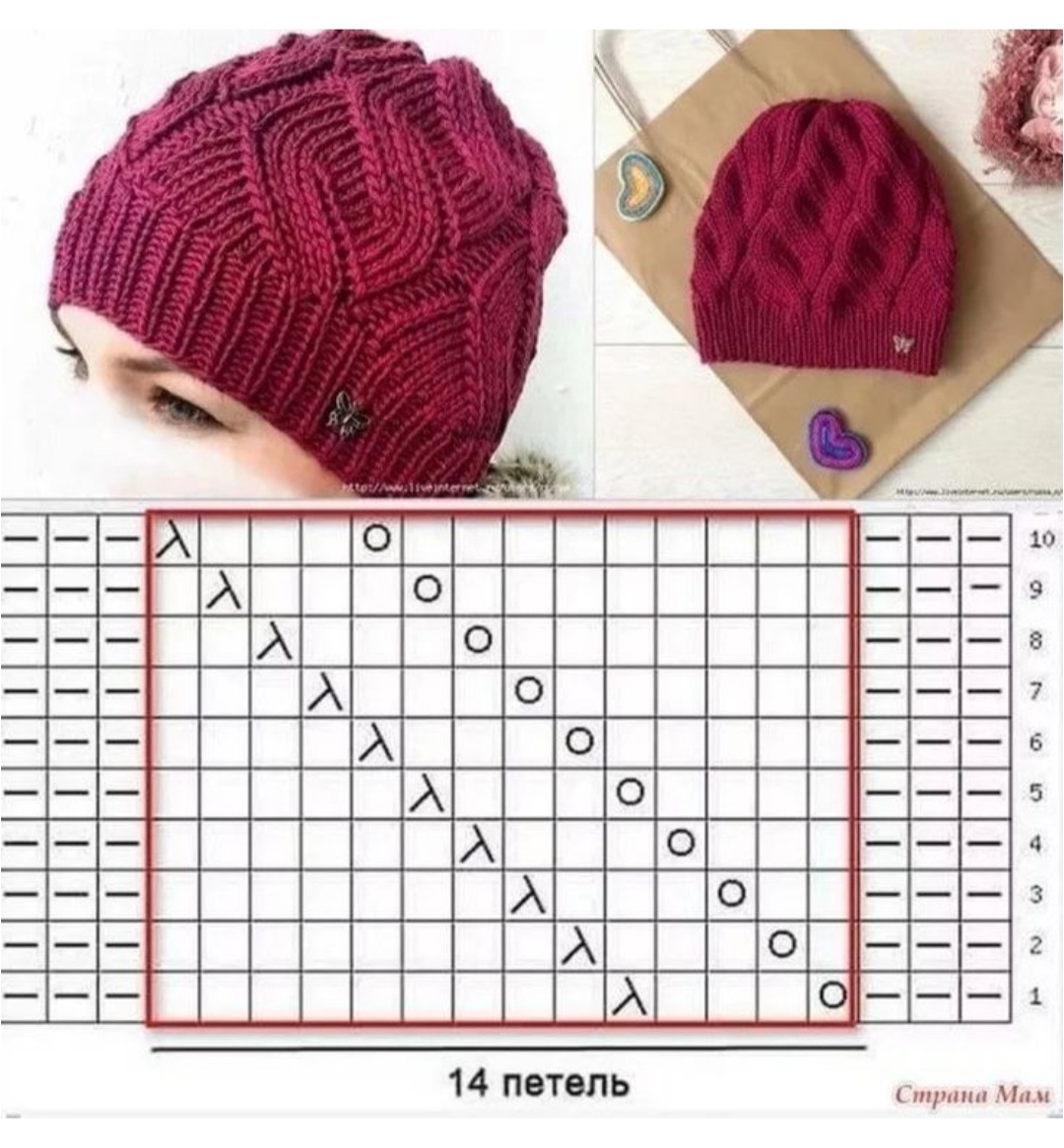 Предлагаю вам схему и фото красивого и простого узора спицами для теплой шапочки.