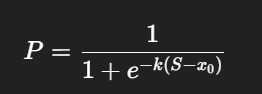 ProbLong = 1 / (1 + exp(-k(score - x0)))