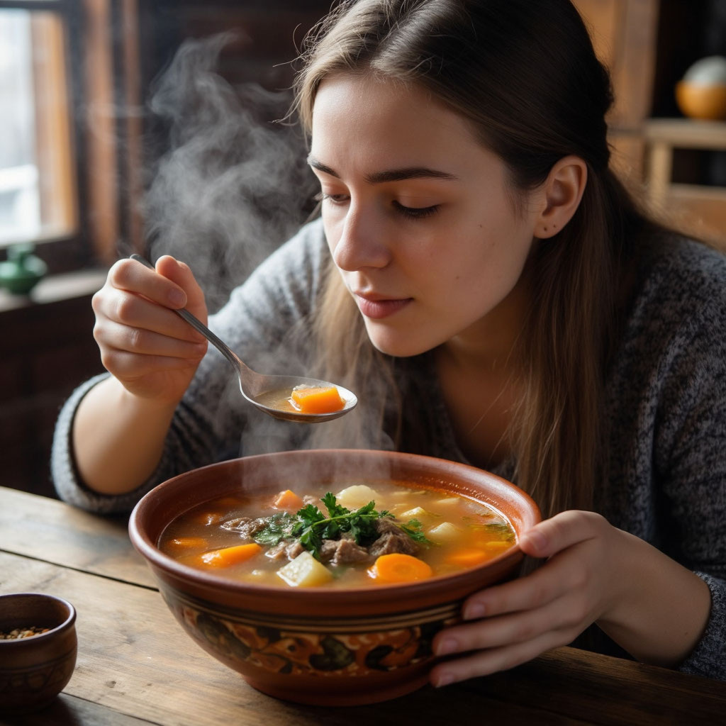 Настолько полезного супа я еще не нашла ни на одном сайте. Я была фанаткой этого блюда еще с самого начала своего беззаботного детства. Временами я очень часто ела его у себя в семье и мне было всегда приятно вспоминать эти моменты. Потому что настолько ароматного и насыщенного супа я не ела никогда в жизни. Когда я выросла и стала ездить в универститет. То часто заходила в ресторанчик неподалеку перед экзаменами, чтобы съесть этот суп на удачу и держать свое здоровье в порядке. Я очень часто простуживалась и когда ела этот суп - мне сразу становилось лучше. От него вы можете получить огромное количество полезных веществ, болеть начнете меньше. Главное, конечно же, правильно приготовить все это Для этого супа нам понадобится: Как приготовить? Кастрюлю я беру обычную и глубокую от Tefal. Подарок от мужа, который хранится в нашей семье и был куплен на 14 февраля. Там сейчас скидки и очень сладкие предложения. Советую присмотреться к товарам. Приятного аппетита!