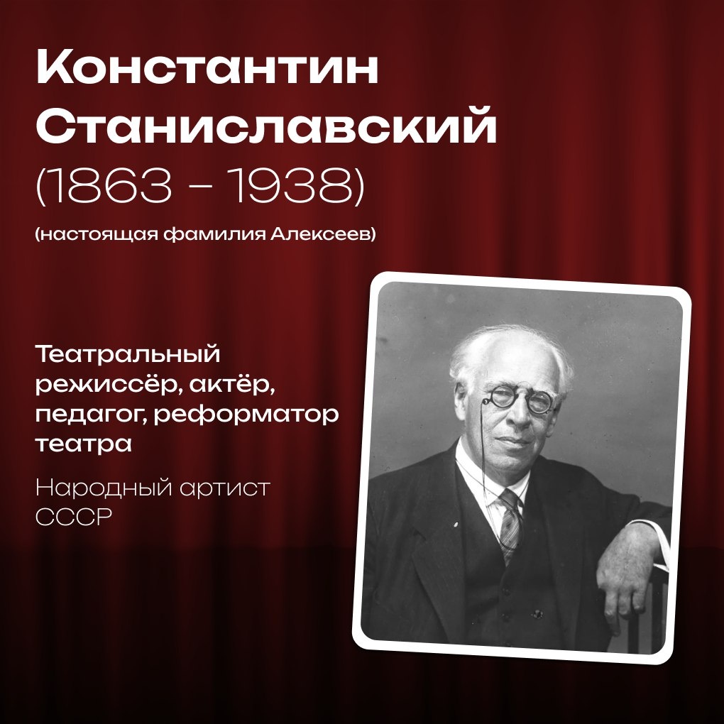 🌍 Сегодня, 17 января, мы отмечаем день рождения настоящего реформатора театрального искусства – создателя знаменитой актёрской системы, которая на протяжении ста лет имеет огромную популярность в России и в мире. Константин Станиславский стал первым народным артистом СССР, был одним из основателей Московского художественного театра и создал метод театральной игры, известный как «система Станиславского». Станиславский остаётся символом преданности искусству и стремления к совершенству, а его имя навсегда вписано в историю мирового театра. Узнайте больше о его жизни и влиянии на искусство в наших карточках!