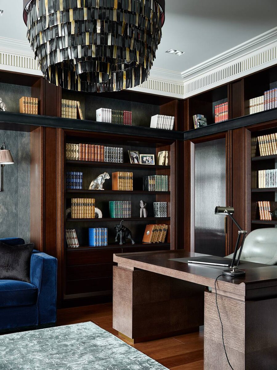 Встроенная библиотека в частной резиденции — это не просто система хранения. Это момент, в котором архитектура начинает говорить. Она рождается из стен, повторяет их линии, задаёт пространству ритм и настроение. Здесь книги — не декор, а часть общей композиции, наравне со светом, материалами и пропорциями. Библиотека не обслуживает интерьер — она становится его характером. Мы всегда проектируем библиотеки как архитектуру: продумываем глубину полок, ритм вертикалей, работу света и тени. Дерево, стекло, металл, мягкая подсветка — всё складывается в спокойную, умную среду, в которой хочется остаться. В гостиной такая библиотека становится фоном для жизни, в кабинете — местом тишины и концентрации, в проходных зонах — связующим звеном между пространствами. Она собирает вокруг себя разные сценарии: чтение, разговоры, паузы, одиночество. И главное — такие библиотеки всегда личные. Они создаются под конкретный дом и конкретного человека. Поэтому выглядят не как дизайнерский приём, а как е
