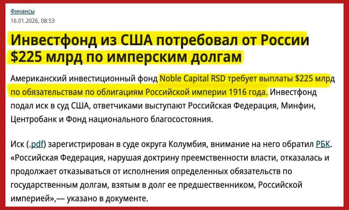 А напоминаю, что деньги за Аляску и форт Росс до сих пор не уплачены.