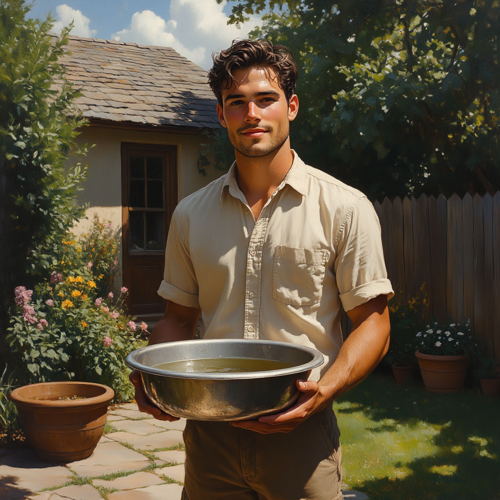 Илья в этот момент стоял у крыльца с ведром воды и шваброй, как рыцарь с мечом, готовый к эпической битве за чистоту.