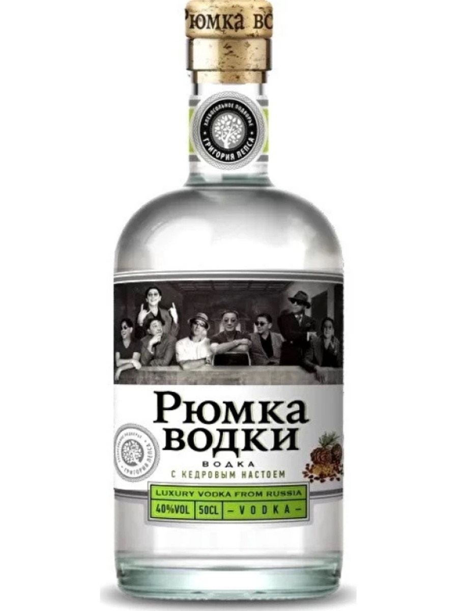 «Рюмка водки с кедровым настоем» — оригинальная русская водка с натуральным вкусом кедровых орехов. Напиток обладает мягким ароматом и насыщенным древесным оттенком благодаря специальной технологии настаивания зерновой водки на отборных кедровых орешках.
