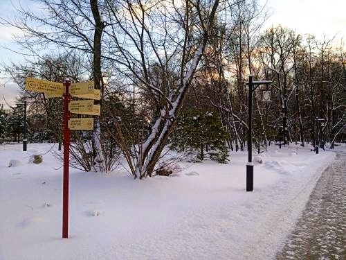 Дорога нелегка... Валуны присыпаны снегом... Все заснежено... Где же мудрец? В парке есть указатели подробные... Замечательные фонарики... Проходим статую Цилинь — это фигура из китайской мифологии, часто ассоциируемая с добрыми предзнаменованиями и символизирующая мир, процветание и благополучие. А вот и он - Конфуций, похожий чем то на викинга в снежной шубе. Мы уже в дальнем уголке парка... Сзади павильона Госян. Деревянная тропинка петляет между деревьев... Очень философская тропа, есть над чем подумать...