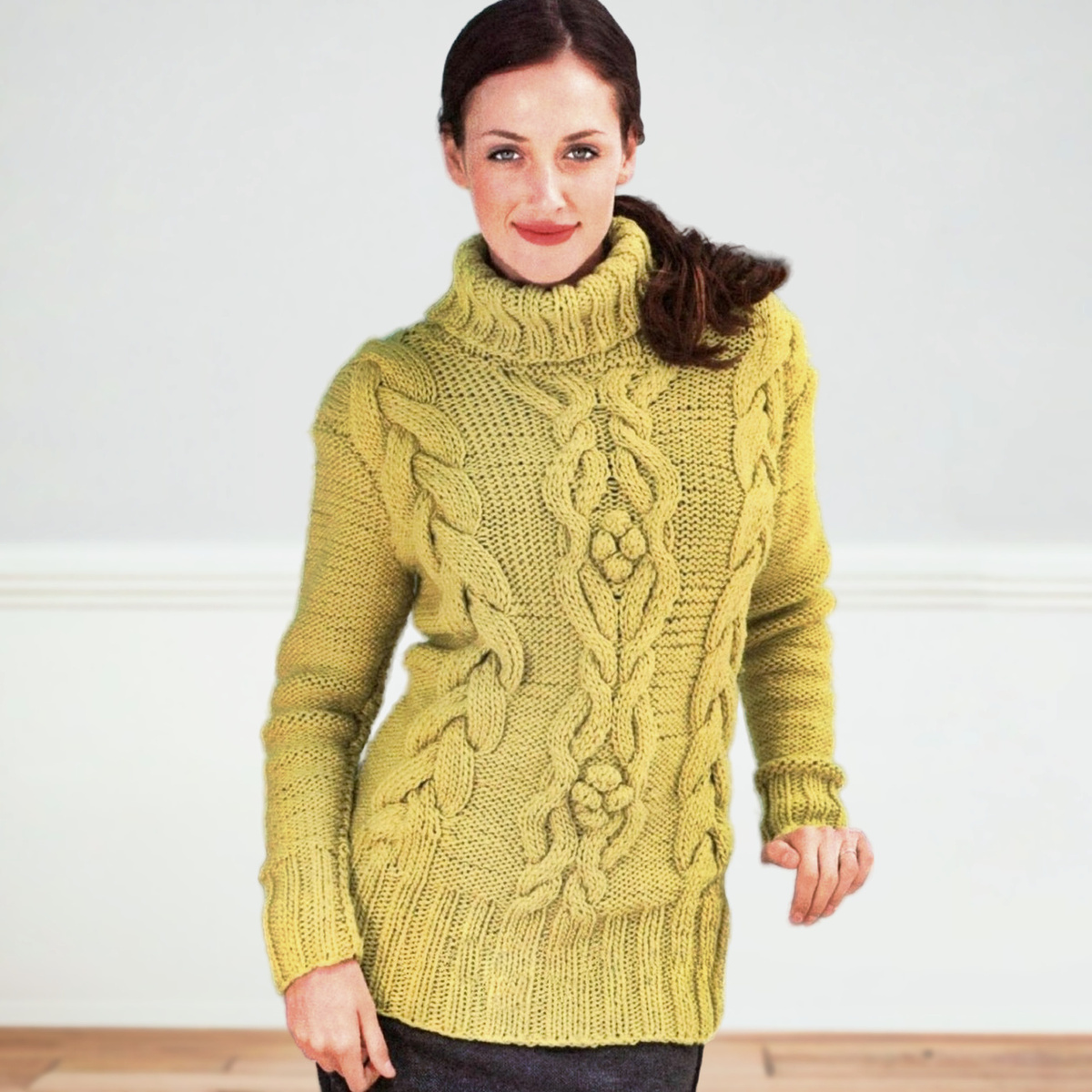 № 1: Удлинённый горчично-жёлтый свитер с объёмными «косами» и «шишечками» ♥