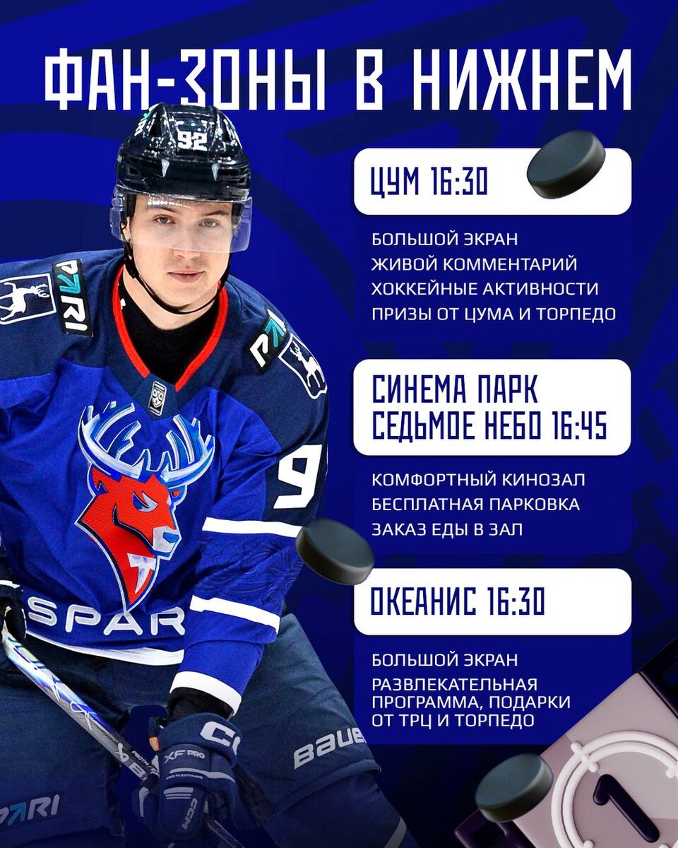 Суббота отличный повод провести вечер с хоккеем и поддержать команду в наших фан зонах 🔥