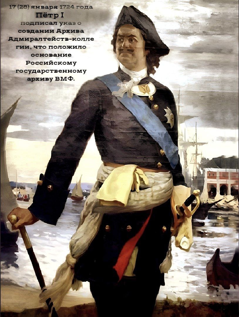 17 (28) января 1724 года по устному указу Петра I был основан архив Адмиралтейств-коллегии для сбора и хранения документов коллегии, её