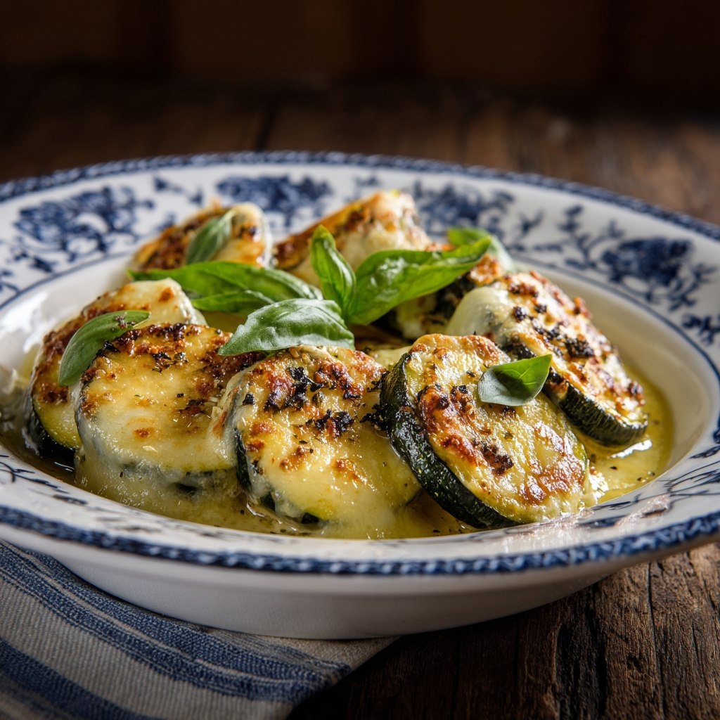 Ингридиенты - Кабачки — 2 штуки - Оливковое масло — 2 столовые ложки - Чеснок — 2 зубчика - Сыр моцарелла (натертый) — 100 грамм - Соль — по вкусу - Черный молотый перец — по вкусу - Свежий базилик — для украшения Способ приготовления 1. Разогрейте духовку до 200°C. 2. Нарежьте кабачки кружочками толщиной около 1 см. 3. В миске смешайте оливковое масло, измельченный чеснок, соль и перец. 4. Обмакните каждый кружок кабачка в получившуюся смесь и выложите на противень, застеленный бумагой для выпечки. 5. Посыпьте кабачки натертым сыром моцарелла. 6. Выпекайте в разогретой духовке 15-20 минут, пока сыр не расплавится и не образует золотистую корочку. 7. Украсьте готовое блюдо свежими листьями базилика перед подачей.