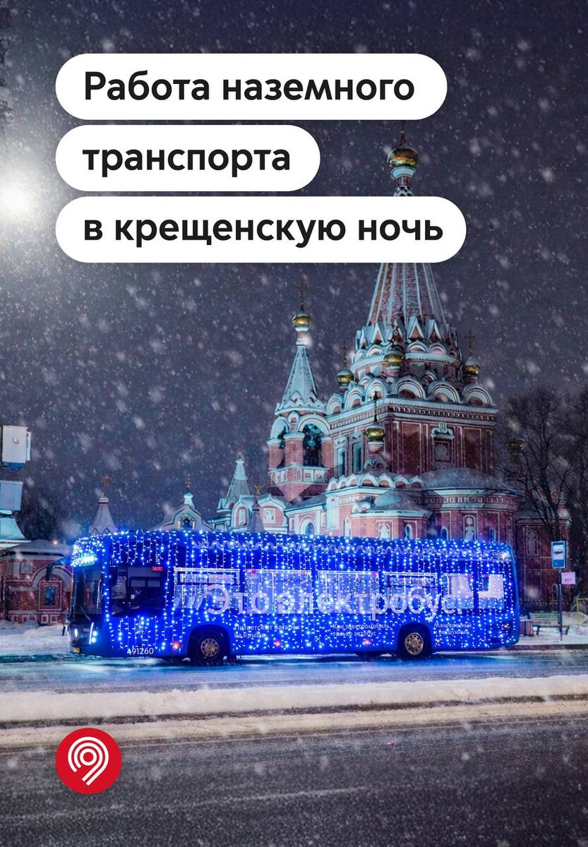 В ночь с 18 на 19 января жители города после богослужений и купаний смогут комфортно и безопасно добраться домой. В разных округах Москвы до 03:00 будут курсировать автобусы и электробусы на 35 направлениях, 18 маршрутов будут работать всю ночь. Просим выбирать только специально оборудованные площадки, где для вашей безопасности будут дежурить сотрудники МЧС.