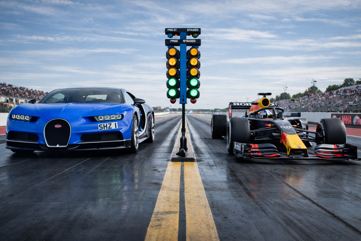 Что будет, если поставить гиперкар за £2,5 млн с 1500-сильным мотором против настоящей чемпионской Формулы-1?