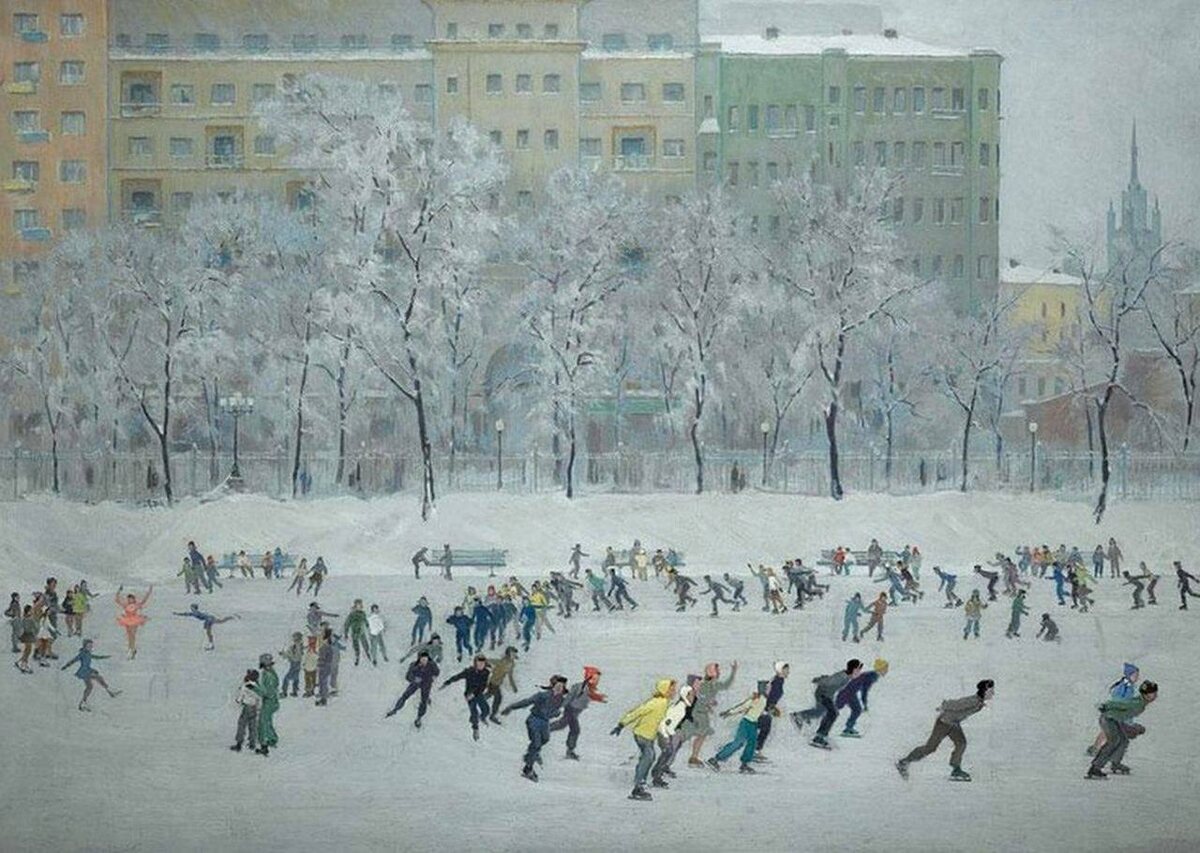 Константин Вялов «Катание на коньках на Патриаршем пруду в Москве», 1960 год