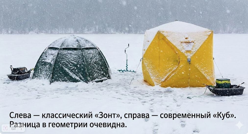 Квадрат или круг? Выбираем идеальную «берлогу» для зимней рыбалки: битва Куба и Зонта