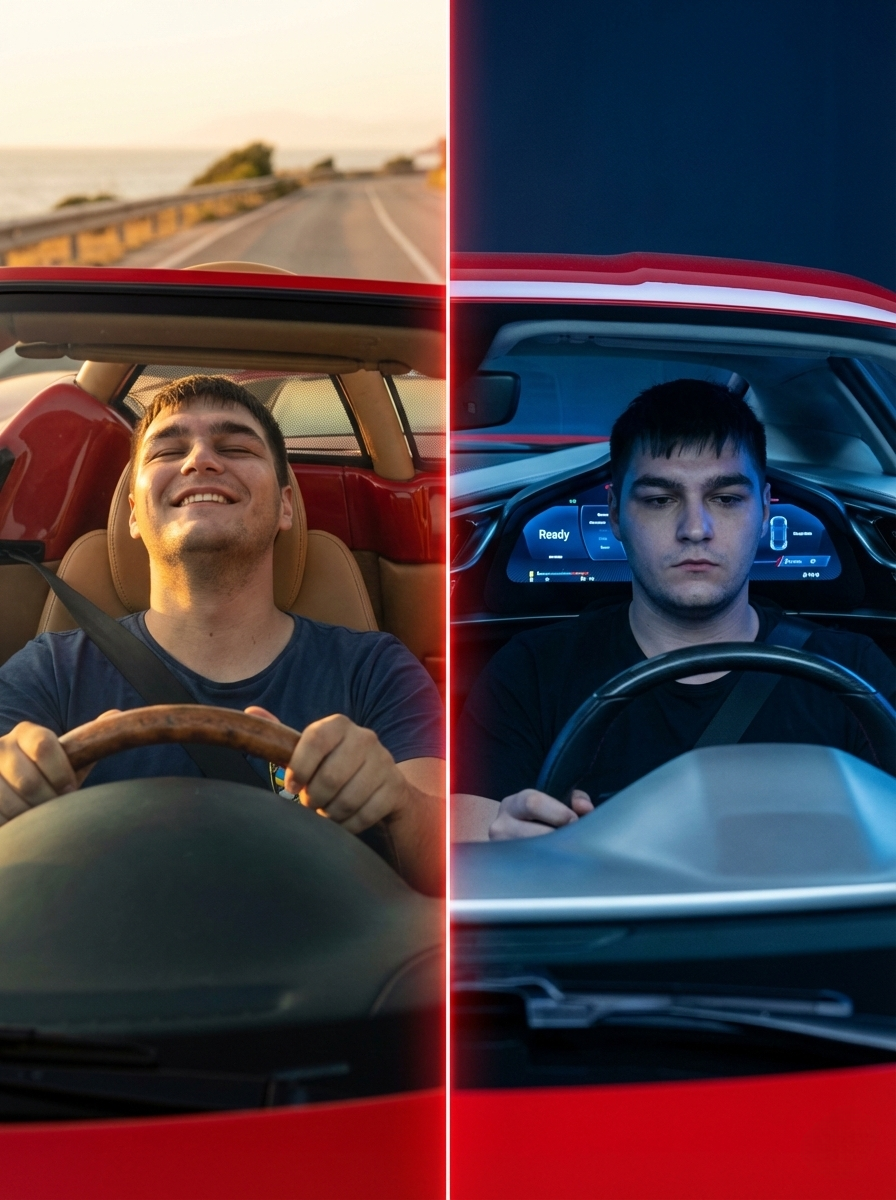 А я сидел и думал: вот же оно. Я скучаю по звуку. По этому грохоту, который соседи ненавидят. По вибрации руля. По ощущению, что машина — не компьютер на колёсах, а живое существо с характером.