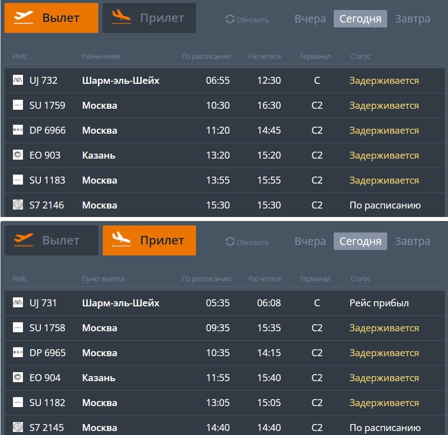 В настоящий момент задерживаются 9 рейсов по направлениям Шарм-Эль-Шейх, Москва и Казань. 🤩 Все самые заметные новости. Подписывайтесь!