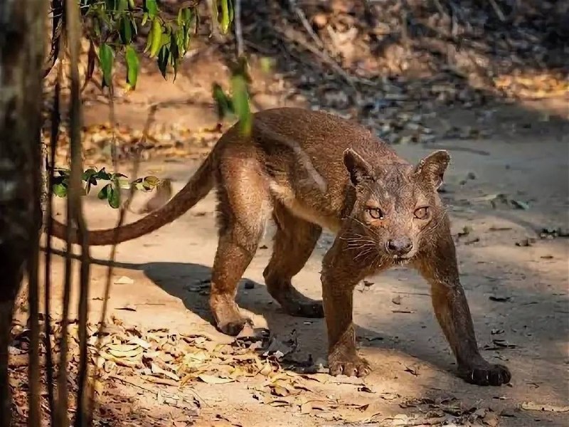 Несмотря на сходство с кошкой, фосса ближе к мангустам и отлично лазает по деревьям