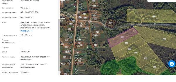 Название: Земельный участок сельскохозяйственного назначения с кадастровым номером 62:20:0020103:738, категория – земли