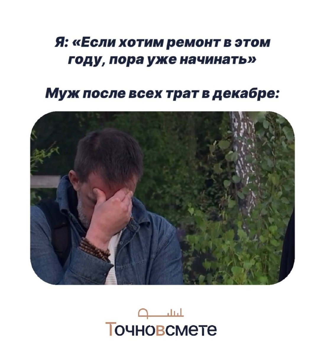 ? 🙃 Мы продумали и сделали все за вас: • вы получаете выгодные условия по ремонту • качественную реализацию за ~ 90 дней • скидки на все материалы от наших партнеров до 35% И важный нюанс: стоимость фиксируется в начале работы. То есть сейчас самый лучший момент, чтобы ее зафиксировать, так как в течение года цена будет расти. И вам не придется по 1000 раз в голове просчитывать, сколько и куда еще тратить) Все будет прописано в таблице. Забирайте смету прямо сейчас и обрадуйте любимую (или любимого)👌