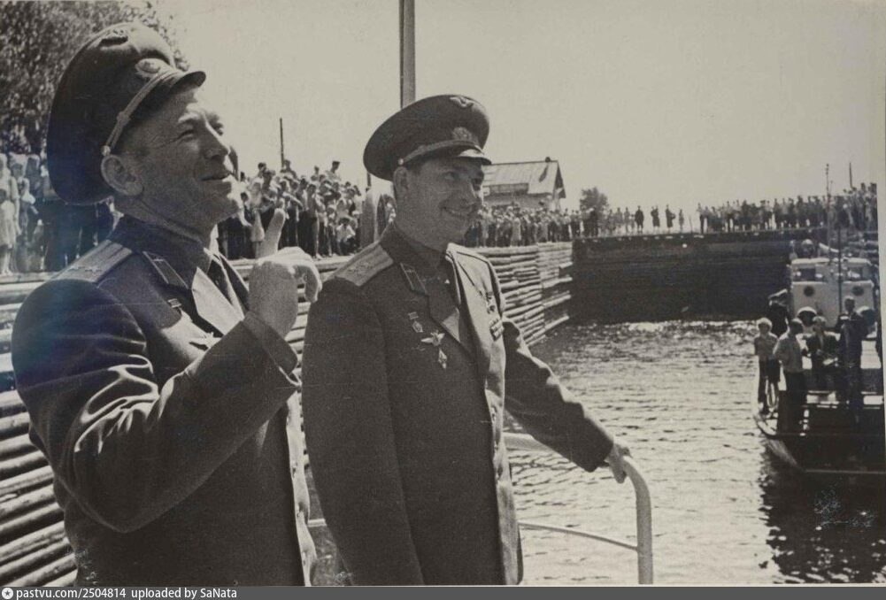 📸 Космонавты П.И.Беляев и А.А.Леонов во время остановки теплохода "Союз" на шлюзе "Знаменитый