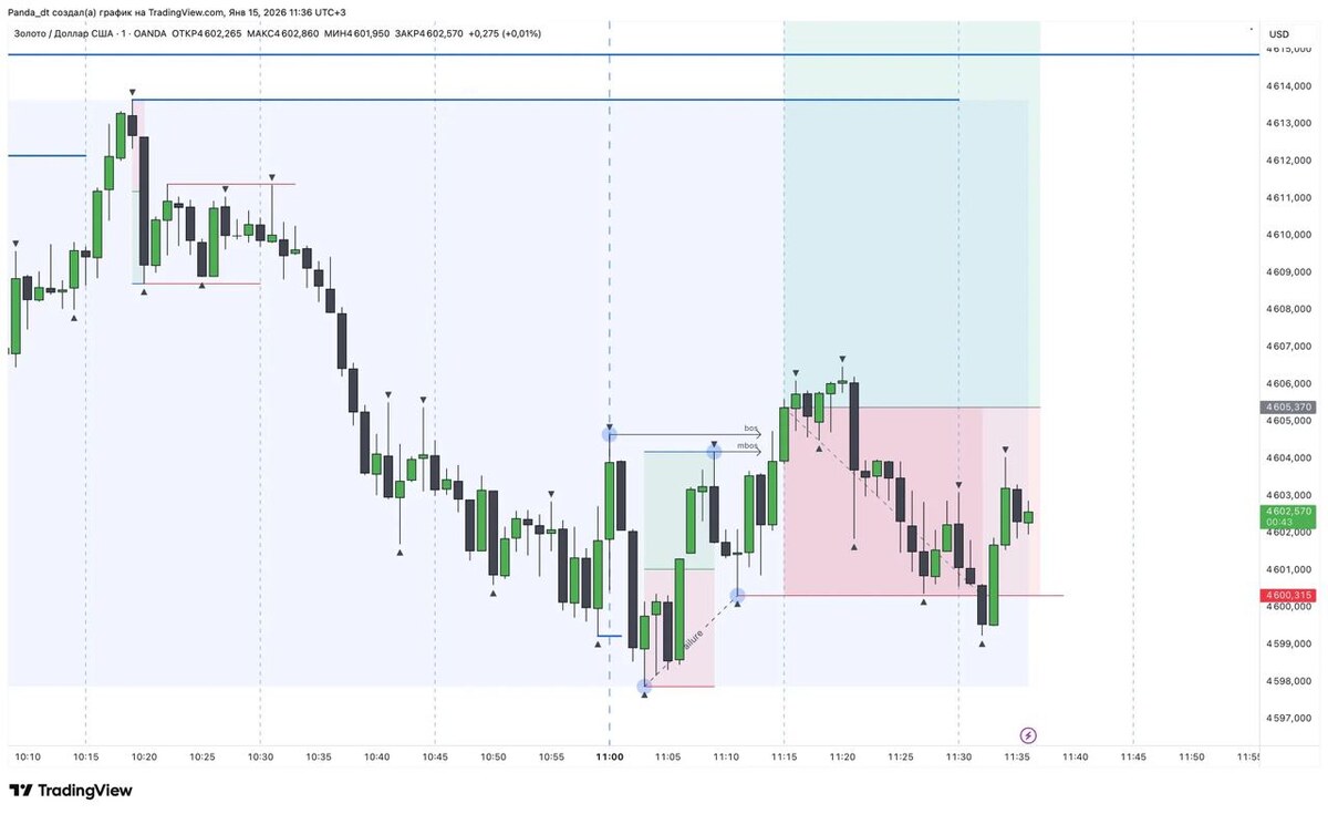 👋 По каким то причинам этот пост не отправился своевременно 🤨 В четверг 15.01.2026 открыл первую сделку в 2026 году. Сразу скажу — всё строго по стратегии, без импровизации: 1️⃣ Снятие Liquidity 1H 2️⃣ Формирование сетапа SMS через mbos + bos 3️⃣ Моментуме 📉 Итог — SL. Неприятно начинать год с минуса, но это часть процесса и реальность трейдинга. Важно другое: ✔️ правила соблюдены ✔️ эмоции под контролем ✔️ стратегия отработана корректно