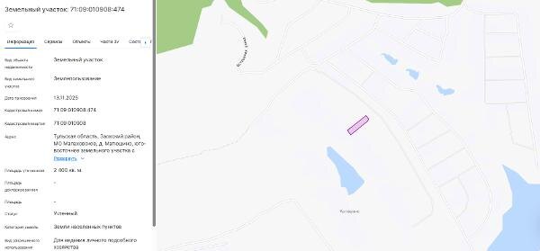 Название: право заключения договора аренды земельного участка из земель населенных пунктов с кадастровым номером 71:09:010908:474, площадь
