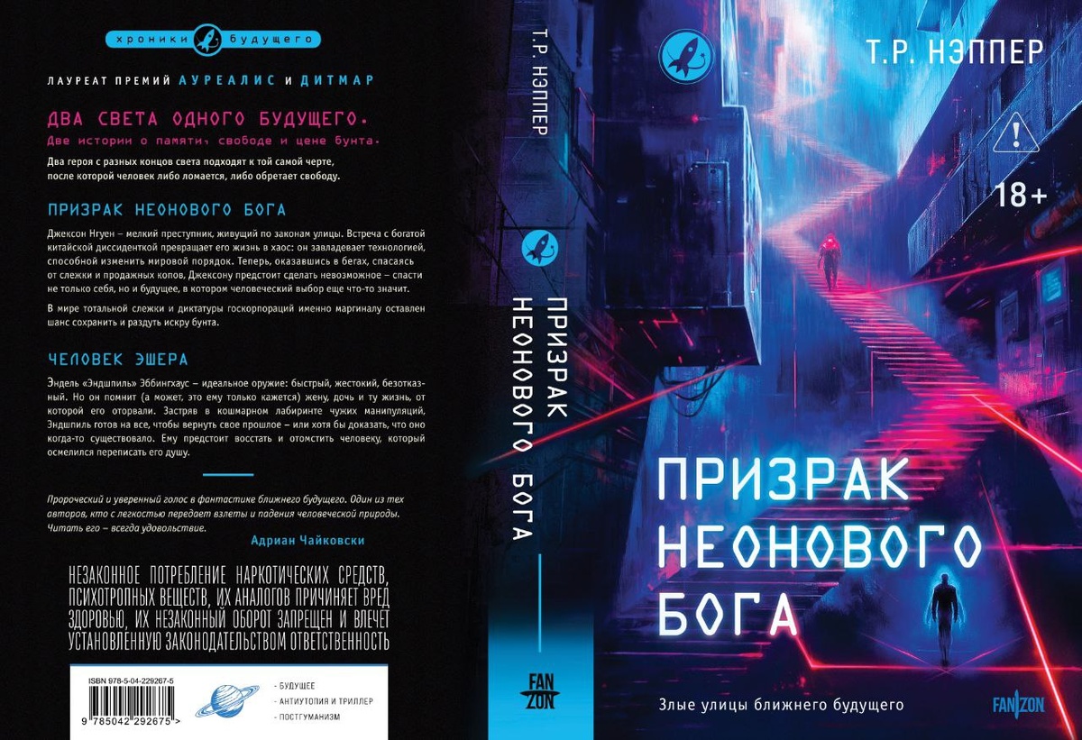 Р. Нэппера! В издание войдут два киберпанк-триллера с погонями и играми с памятью. Для тех, кто любит высокотехнологичный экшен, психологические интриги и истории, где грани между человеком и инструментом стираются. Для поклонников романов Уильяма Гибсона, Ричарда Моргана и вселенной «Призрака в доспехах». «Призрак неонового бога» — лауреат «Ауреалис» и «Дитмар». 📖 Технологии сделали войны в мире будущего еще более изощренными, а социальные эксперименты — более бесчеловечными. Между памятью человека и сгенерированными искусственным интеллектом данными больше нет границы. Джексон Нгуен — маргинал, случайно получивший особую технологию, что может изменить порядок в мире. В мире тотальной слежки и диктатуры госкорпораций именно ему предстоит раздуть искру бунта. Эндель Эббингхауз — гангстер, пошедший против босса. Ему кажется, он помнит другую жизнь — с женой и дочерью. Именно это позволяет ему оставаться человеком, и он готов за это побороться. «Пророческий и уверенный голос в фа
