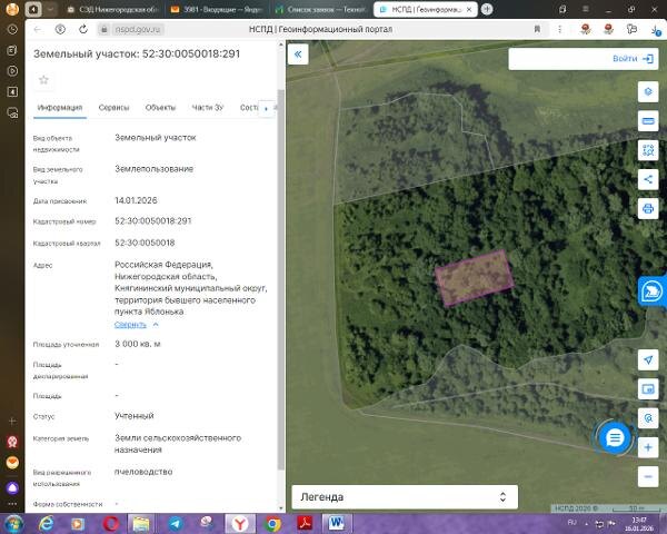 Название: земельный участок, площадью 3000 кв.м., с кадастровым номером 52:30:0050018:291, расположенного по адресу: Российская Федерация, Нижегородская область, Княгининский муниципальный округ, территория бывшего населенного пункта Яблонька, категория земель: земли сельскохозяйственного назначения, разрешенное использование: пчеловодство Канал: Госземля Нижегородская область Область: - Район: - Населенный пункт: - Локация: Смотреть на карте ВРИ: Пчеловодство Кадастровый номер: 52:30:0050018:291 Кадастровая стоимость: - Вид сделки: Аренда Площадь: 3000 м² Начальная цена: - руб. Дата завершения: 16.02.2026 Подробнее: ГИС ТОРГИ #госземля #земляотгосударства #земля #земельныйучасток #земельныеторги #торги #аукцион #арендаземли #аренда #нижегородскаяобласть