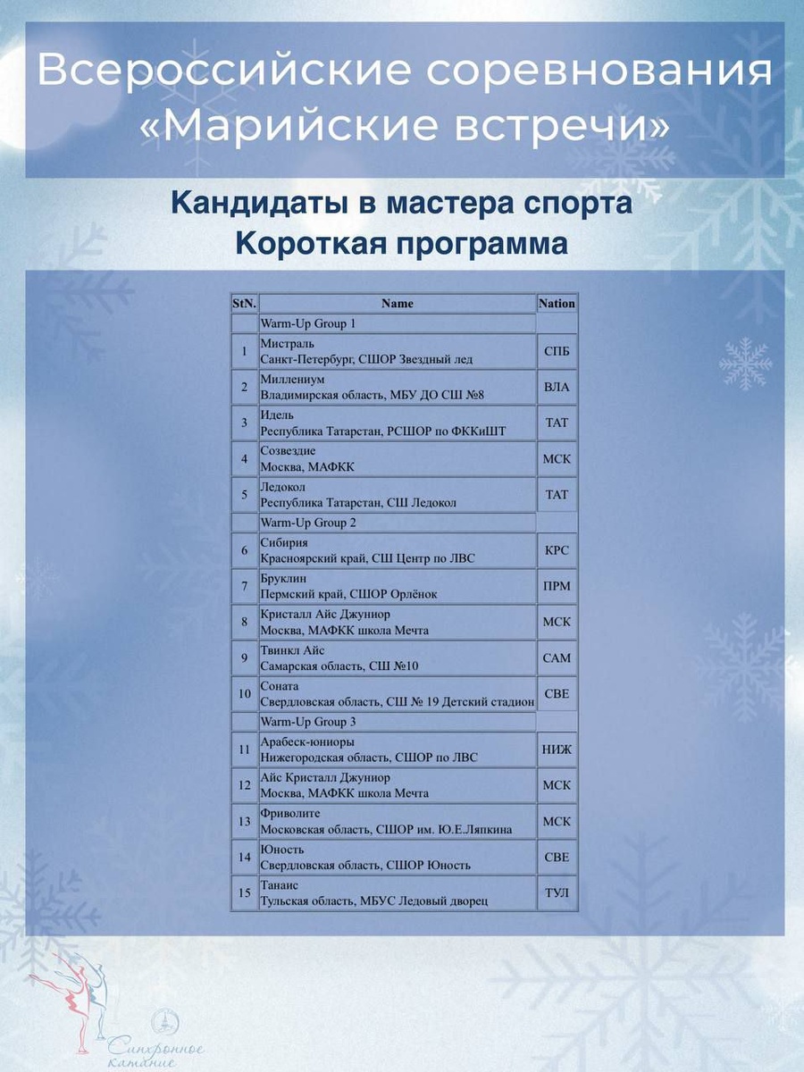 » 17 января 2026 года Кандидаты в мастера спорта Короткая программа 14:45 Онлайн-табло соревнований Онлайн-трансляция соревнований *Будет опубликована до начала соревнований #ффккр #синхронноекатание #вс_марийские_встречи