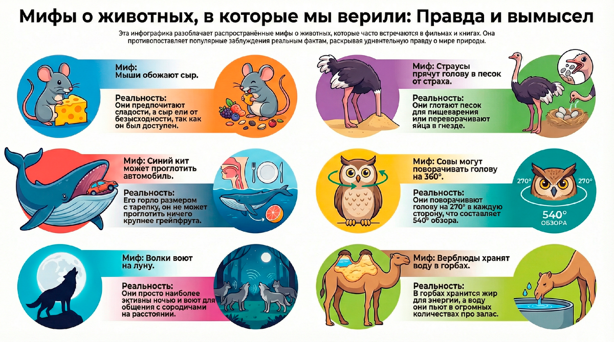 Готов к детективному расследованию? Тогда поехали! Это не просто факты — это разоблачение мифов! Мы заглянем в тайные уголки природы, рассмотрим всех — от синего кита (размером с самолёт!) до невидимого жучка, и поймём, насколько животные круче и удивительнее, чем мы думали. Готов удивляться? Тогда вперёд, сыщик! Как тебе результаты? Попал впросак? Не расстраивайся — над этими мифами смеётся весь мир! Приходи читать наше большое расследование, чтобы узнать: