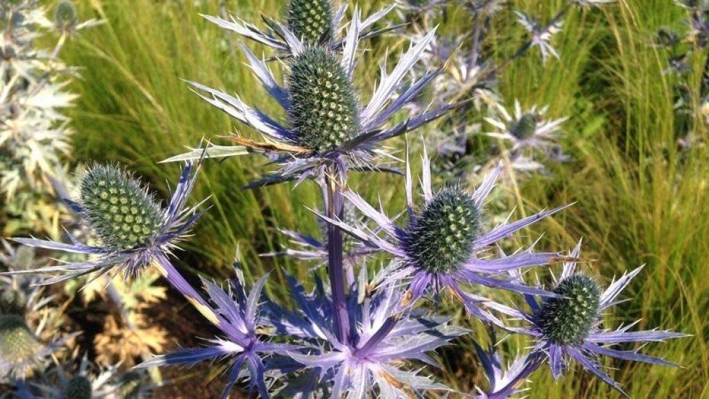 С лилиями и флоксами Синеголовник совсем не сочетается, зато среди луговых трав и цветов, думаю, ему самое место.