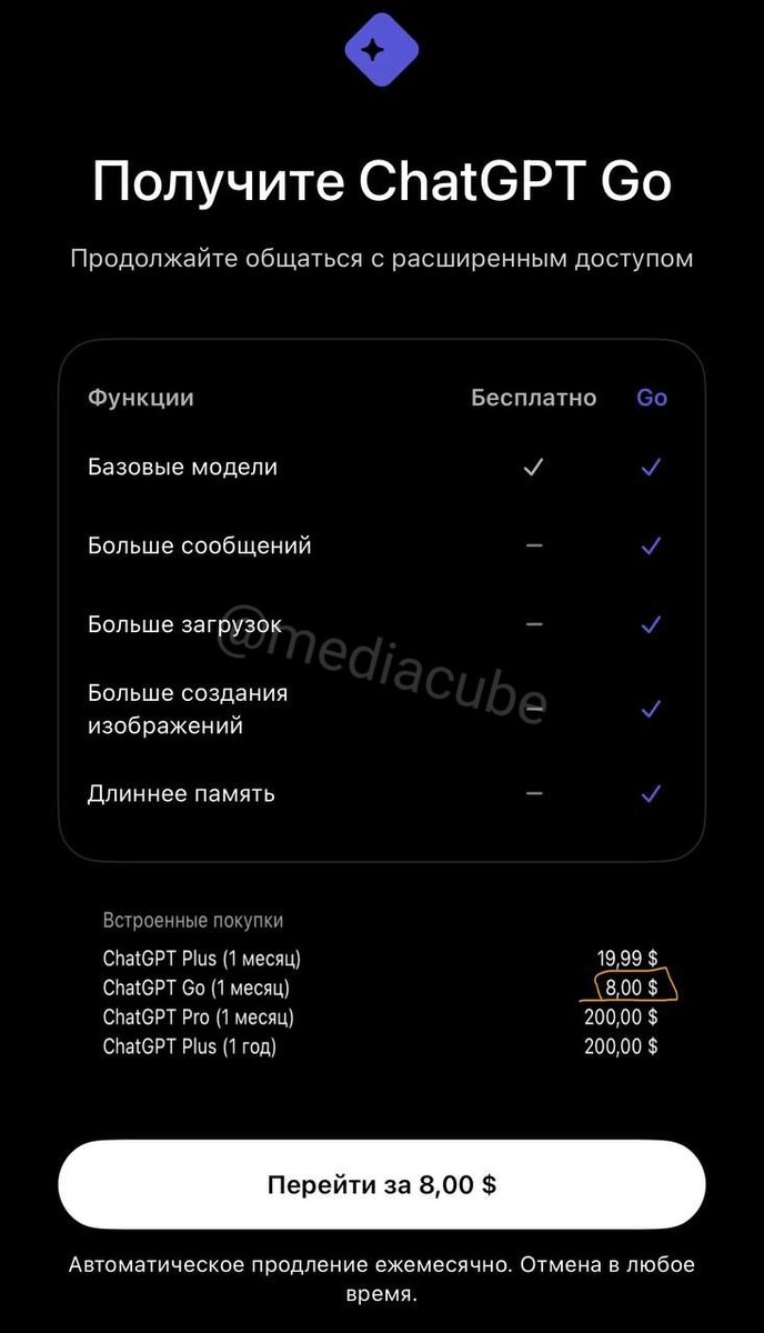 ⚡Появилась бюджетная подписка в ChatGPT - GO всего за 8💰~ 624 руб. (мес.)