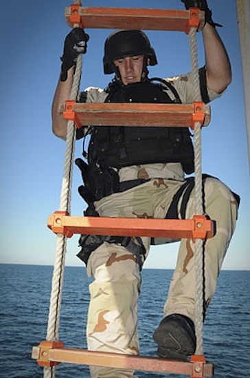 К краю горловины он подошёл с двумя матросами. Все вместе они успели притащить снизу два скреплённых между собой пятнадцатиметровых штормтрапа из прочной манильской пеньки.