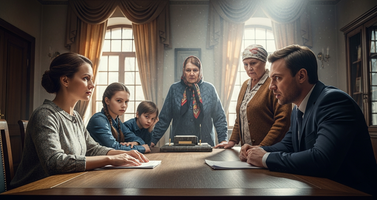 Утром в нотариальной конторе стояла тишина, нарушаемая лишь шелестом бумаг. Дмитрий надел свой лучший костюм, Тамара Игоревна — всё золото, что нашла в шкатулке. Елена привела с собой детей.