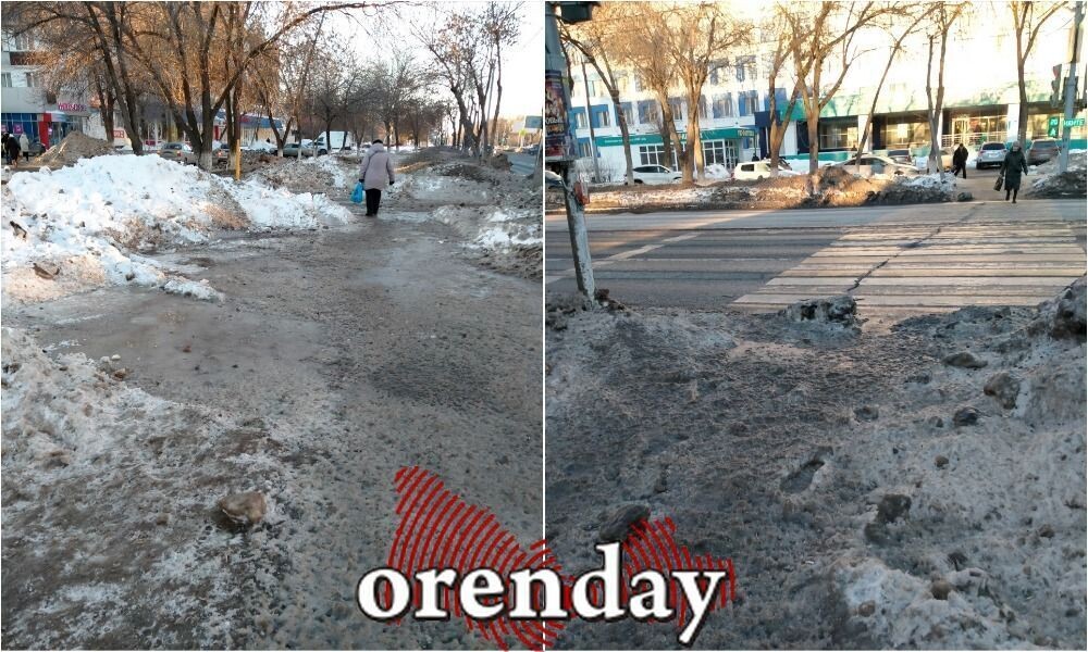 Опасная дорога до поликлиники: гололедица продолжает сковывать тротуары Оренбурга