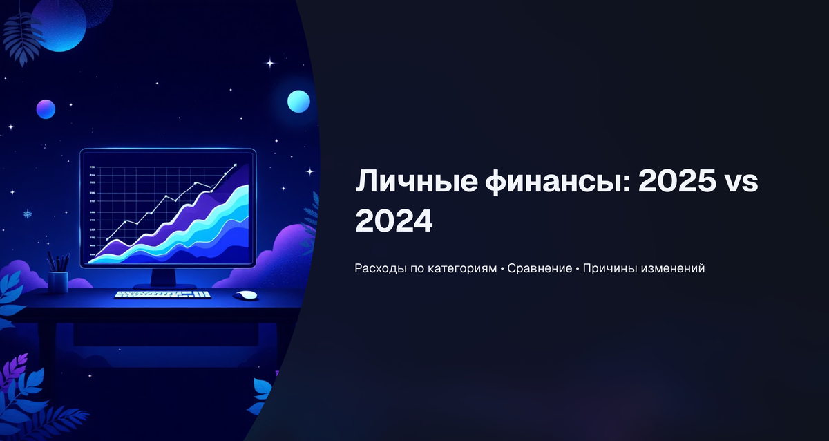 В этом году решил поэксперементировать с эйай для создания финальной презентации, в духе времени так сказать. Последним прикрепил слайд-исходник, по аналогии с прошлым годом. В целом структура трат понятная для меня, расходы определенных статей хотелось бы уменьшить, плюс в целом иметь расходов меньше чем есть на самом деле, к этому и буду стремиться в 2026.
