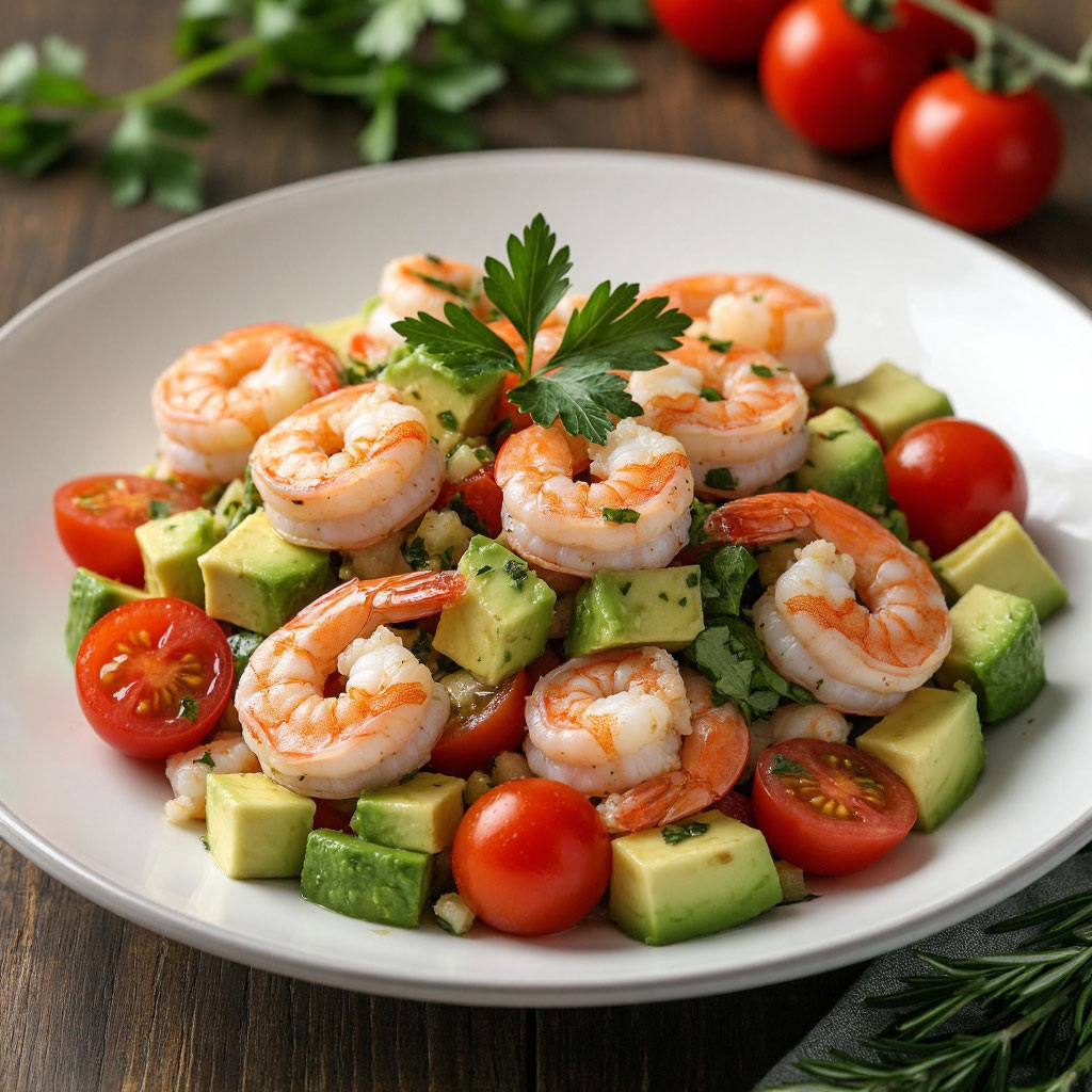 Откиньте на дуршлаг, дайте остыть, при желании очистите от панциря (оставив хвостики для красоты — опционально). - Подготовка авокадо.