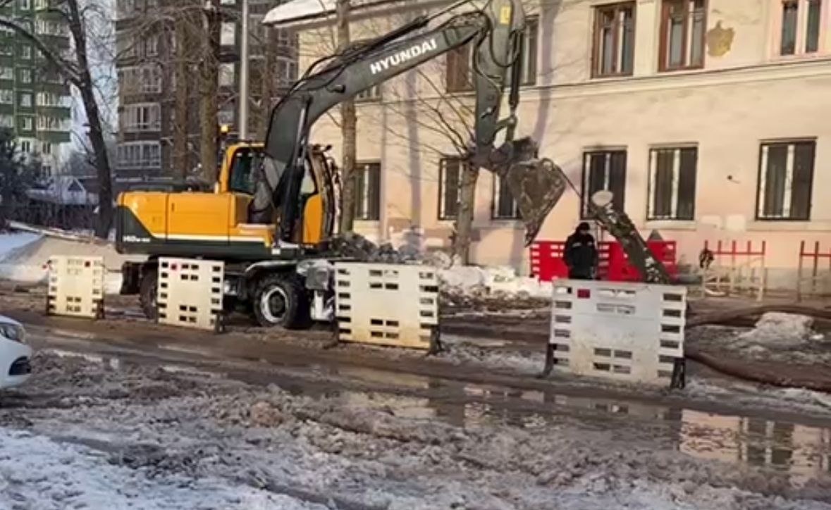 Гигантская яма образовалась около больницы на улице Василия Каменского
