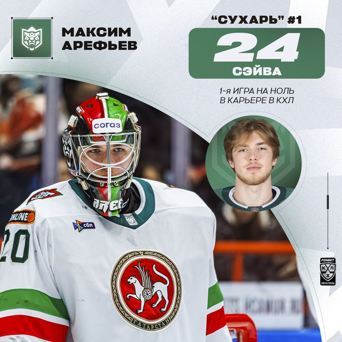 Важный день в карьере Максима Арефьева 🟢 — 22-летний вратарь впервые сыграл на ноль в КХЛ!