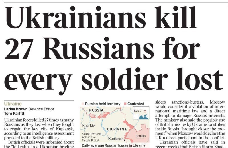 Британская пропаганда бьет все рекорды! The Times со ссылкой на «секретные разведданные» (анонимные, конечно!) заявила: в боях за Купянск
