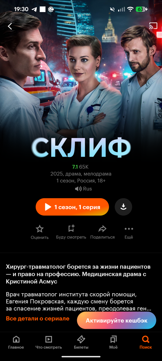 Начала смотреть два сериала "Склиф" и "Ландыши". Я поклонница старого сериала "Склифосовский", поэтому решила, что рискну глянуть тнтшную историю.