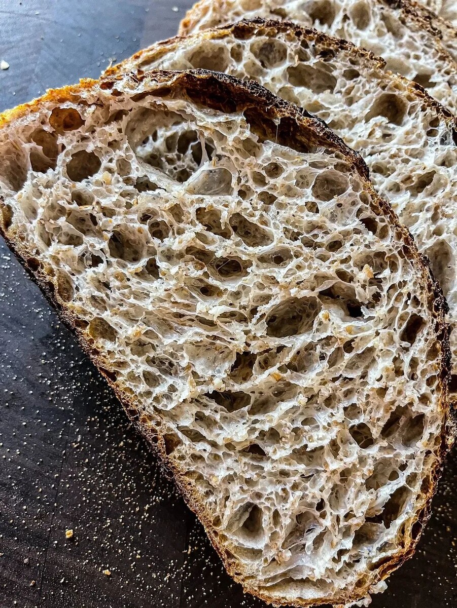 Многие начинают печь подовый хлеб на закваске ради одного — красивого, живого мякиша с крупными порами.