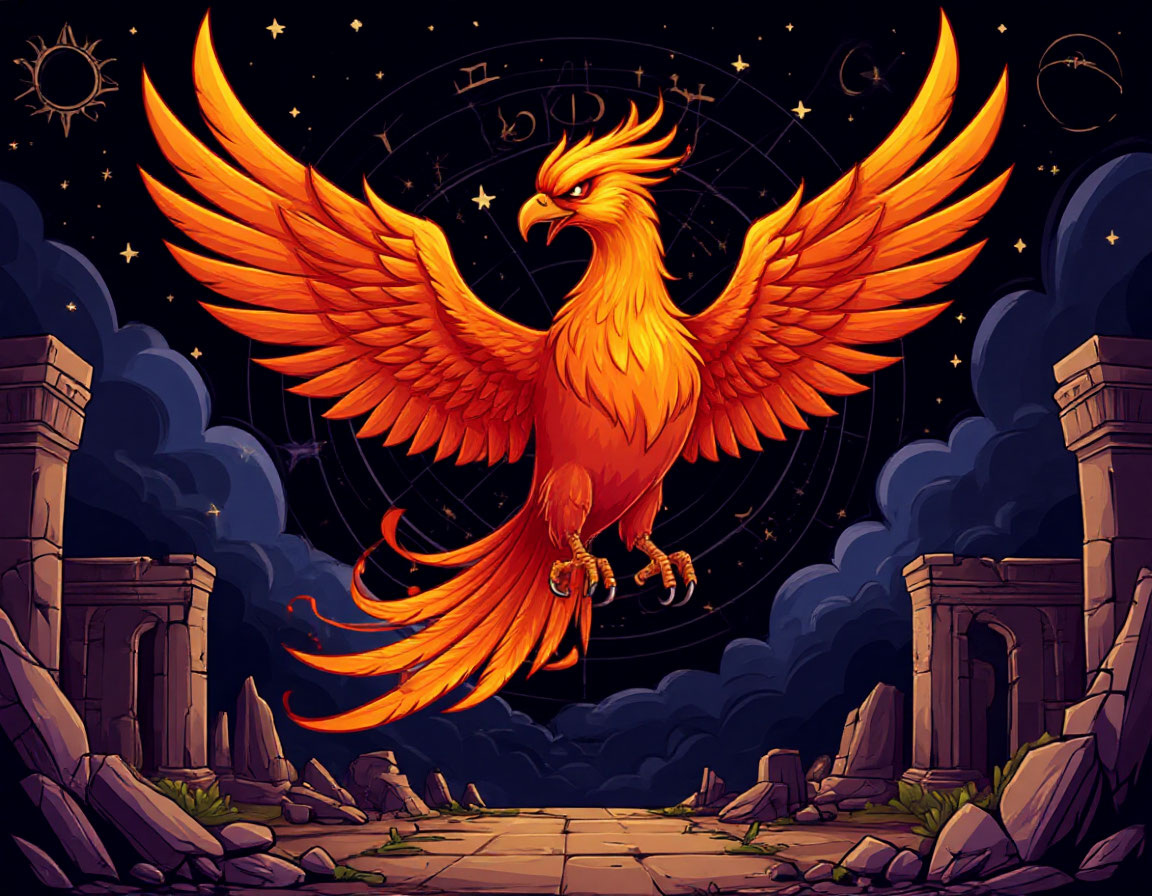 Символ периода: феникс над руинами — возрождение через очищение, обретение силы в процессе перемен.