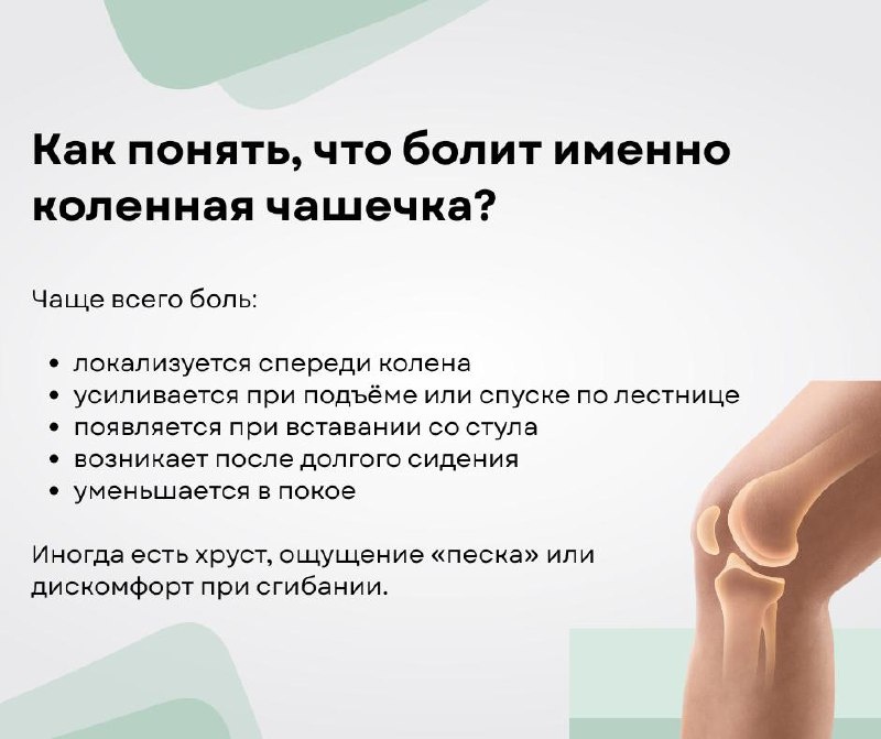 ? Боль в области коленной чашечки — одна из самых частых причин, с которой люди приходят к врачу после 40–50 лет. Важно понимать: чаще всего это не «износ всего колена», а проблема в том, как работает надколенник и какие мышцы его удерживают. Если не разобраться, боль может тянуться месяцами и постепенно ограничивать движение. Рассказываю! Листайте карточки. И напоминаю, что ранняя помощь позволяет избежать артроза и длительного лечения. Если пост был полезен — поставьте 🧡 и напишите в комментариях, какие у вас есть проблемы с ногами?