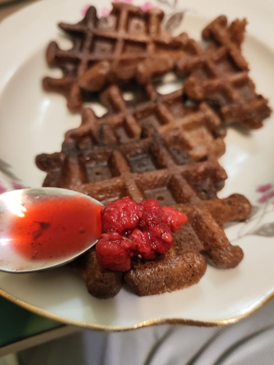 Давненько не было. А тут дело важное, между прочим. Мой самый лучший муж приволок мне ящик шоколадного сливочного масла (не спрашивайте). Он все носит ящиками, коробками, упаковками и целыми багажниками. Кто читал мою книгу, тот знает. Ну а что мне делать с таким количеством шоколадного масла? Вот вафли намутила. Если у кого-то тоже лежит ящик масла, то вот вам идея: Пачка масла Стакан муки Два яйца Сахар грамм 100 Ваниль разрыхлитель и щепотка соли. Какао порошок грамм 40. А и молока ещё полстакана. Печем вафли. А чтобы добавить полезности к этому шоколадному безумию, я достала из морозилки малину. Так в общем с любыми ягодами можно есть. А я ж ещё в тот день худела, обедала салатом из капусты и отварным мясом. Но меня не проведёшь, мой организм быстро придумал как восполнить недостающее.😂
