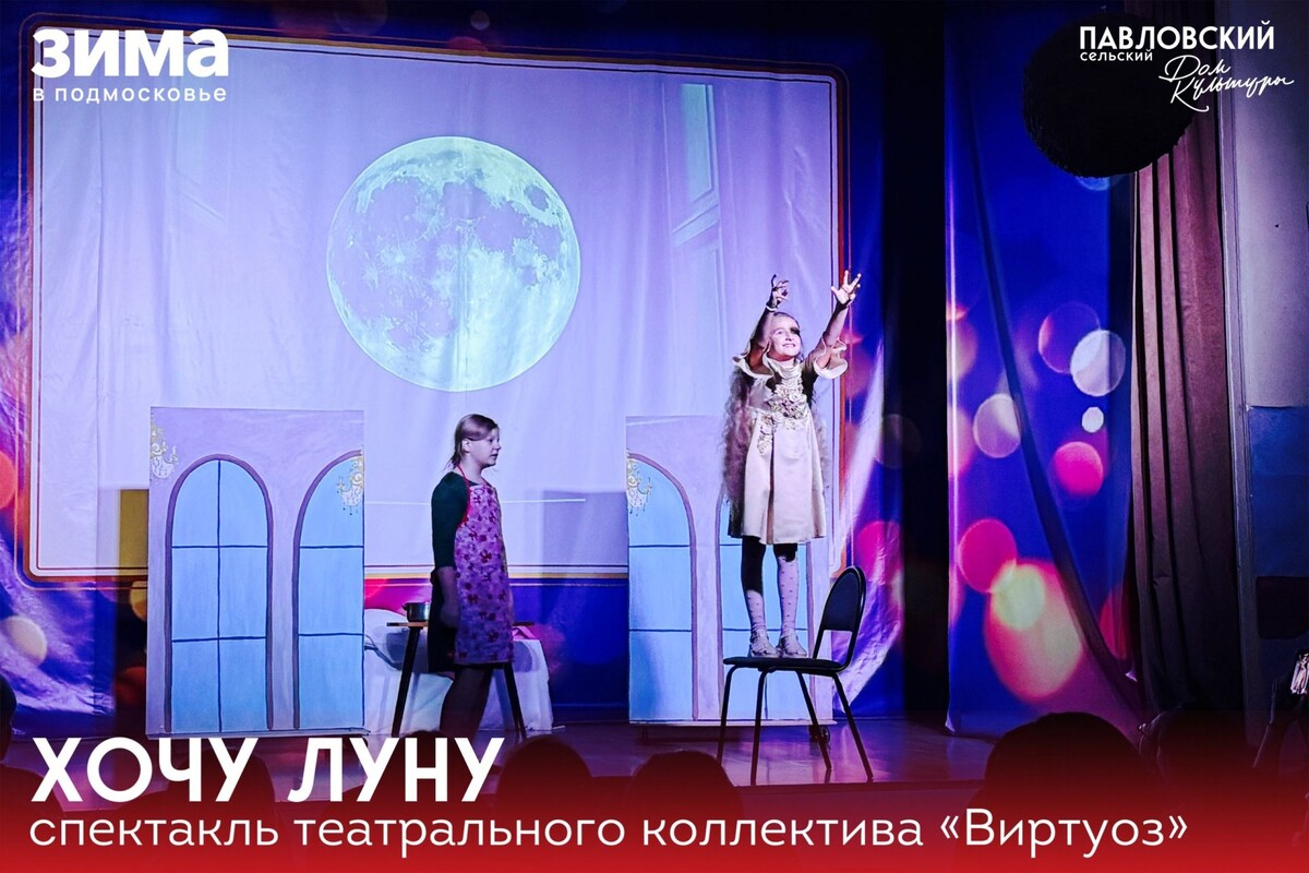 ✨ НОВОСТИ. ХОЧУ ЛУНУ 🌕 Театральный коллектив «Виртуоз» подарил зрителям незабываемое путешествие в мир фантазии и чудес — на сцене ожила удивительная сказка английской писательницы Элинор Фарджон «Хочу Луну». В центре истории — юная Принцесса, которая, увидев на небосклоне Луну, загорается невероятным желанием: она должна заполучить её! Это капризное требование запускает череду удивительных и порой забавных событий во всём королевстве. 📆 16.01.2026 🏢 Павловский сельский дом культуры (СДК) 📍 г.о.Домодедово, дер.Павловское, ул.Вокзальная, д.18 ✅ Мероприятия Домодедово https://dzen.ru/id/66f10385cc4c5a16f7b5fb02 http://vk.com/domodedovo_events http://dzen.ru/domodedovo_events