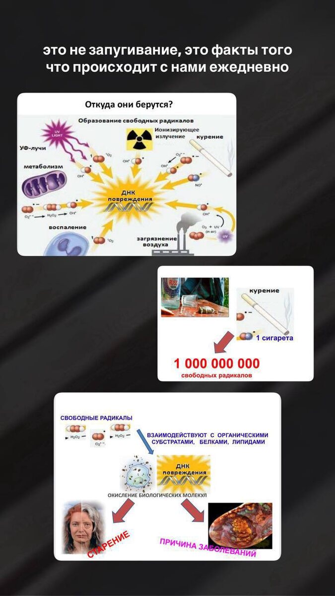 антиоксидантов. Он приводит к преждевременному старению и плохому самочувствию❗️ Организм пытается самоосстанавливаться, погасить этот стресс, каждый день, кидая в топку свои ресурсы: затрачивает магний, кальций, витамины, и тд. Это огромное кол-во элементов каждый день 👉 и все это берется у организма взаймы из наших костей, органов, клеточных структур и тд. Чтобы все восполнить - нужны внешние источники. Идеальные компоненты, которые обезвреживают стресс в организме - антиоксиданты. Как правило, они есть в организме эндогенного характера, то есть собственные антиоксиданты. Но если сильный стресс, то их не хватает, и нужно их задействовать извне (экзогенные). При оксидативном стрессе у человека нет энергии. 👉Есть: вялость, сонливость, упадок сил, депрессия, сбой иммунитета, организм цепляет все подряд; часто жировая ткань начинает расти, тк нет баланса❗️а жировая ткань - это самый активный оксидативный агент в организме (имеется в виду внутренняя жировая ткань, висцеральный / буры