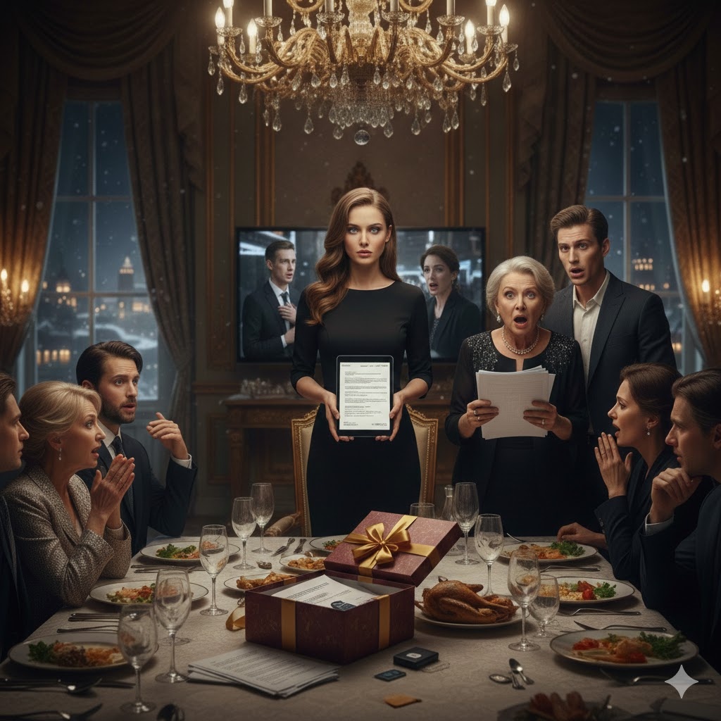 — Антонина Петровна, вы всегда говорили, что в семье не должно быть тайн. Что каждый должен знать своё место и свою ценность, — Марина достала из-под фуршетного столика красивую, обвязанную золотой лентой коробку. — Я долго думала, что подарить женщине, у которой «всё под контролем». И я решила подарить вам... правду.