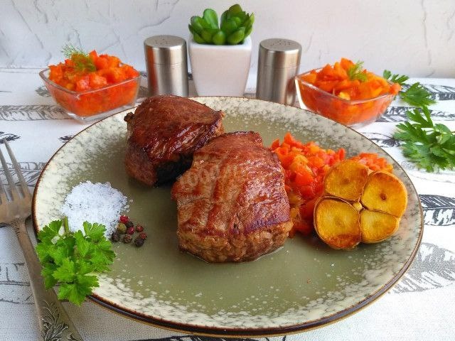 🥩 📖 Ингредиенты: · Говядина (филе миньон) – 2 шт. · Оливковое масло – 2 ст.л. · Сливочное масло – 50 г. · Чеснок – 2 зубчика · Розмарин – 1 веточка · Соль, свежемолотый черный перец – по вкусу 🧑🍳 Приготовление: 1. Стейки достаньте из холодильника за 20-30 минут до готовки. Обсушите, обильно приправьте солью и перцем со всех сторон. 2. На сильно разогретой сковороде с оливковым маслом обжарьте стейки по 2-3 минуты с каждой стороны до румяной корочки. 3. Убавьте огонь, добавьте сливочное масло, раздавленный чеснок и розмарин. Поливайте стейки ароматным маслом 1-2 минуты. 4. Снимите с огня, дайте мясу «отдохнуть» на тёплой тарелке под фольгой 5-7 минут. Подавайте сразу. ⠀ #стейк #филеминьон #говядина #рецепт #ужин https://dzen.ru/id/5d30f5b3f2df2500ad9dda8b