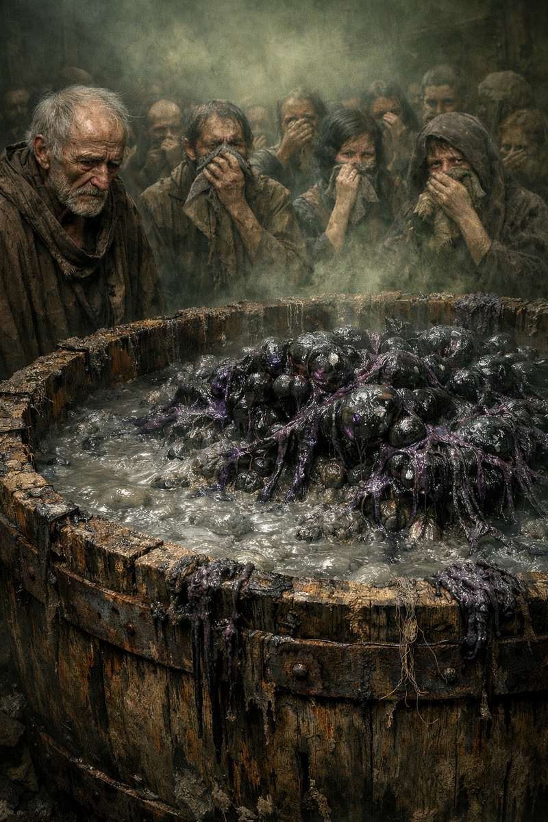 Огромные деревянные чаны, обычно наполненные серой массой, теперь были покрыты «бархатом». Черная, с фиолетовыми прожилками плесень колыхалась, словно живое существо. Она пожрала всё. Тонны биомассы. Запасы, которые должны были кормить три сотни человек всю долгую, холодную зиму.